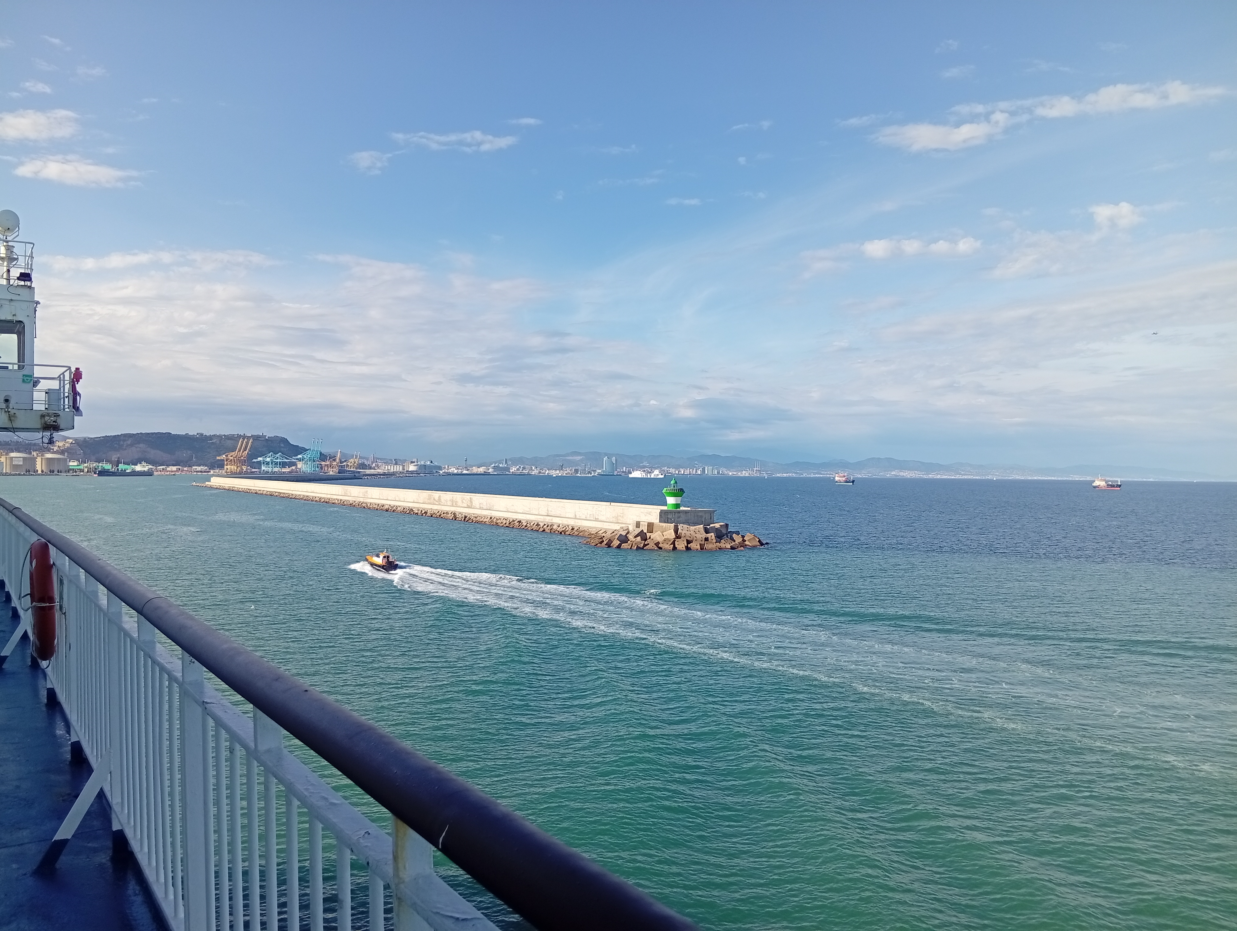 Cette fois-ci la traversée est plus longue donc on s'occupe en cherchant des dauphins... qu'on verra un peu avant l'arrivée à Barcelone.